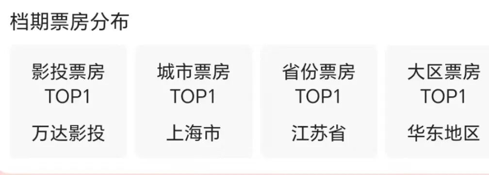 影投票房中,万达影投名列榜首。上海市票房产出最高,江苏省票房产出最高,整个华东地区票房占比最高。
