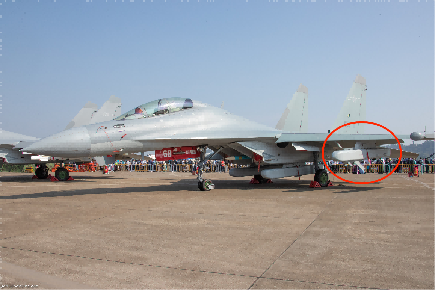 为了实现电子战能力的最大化,歼-16D主要依赖外置的专用电子干扰吊舱,歼-16D通常可以挂载三个型号的电子战吊舱。首先是KG800改进型,外形与美国EA-18G携带的ALQ-99电子战吊舱很接近,该型电子干扰吊舱公开信息极少,外界推测具有在宽频频段对不同电磁信号进行自动截获、分析、实施干扰的能力。