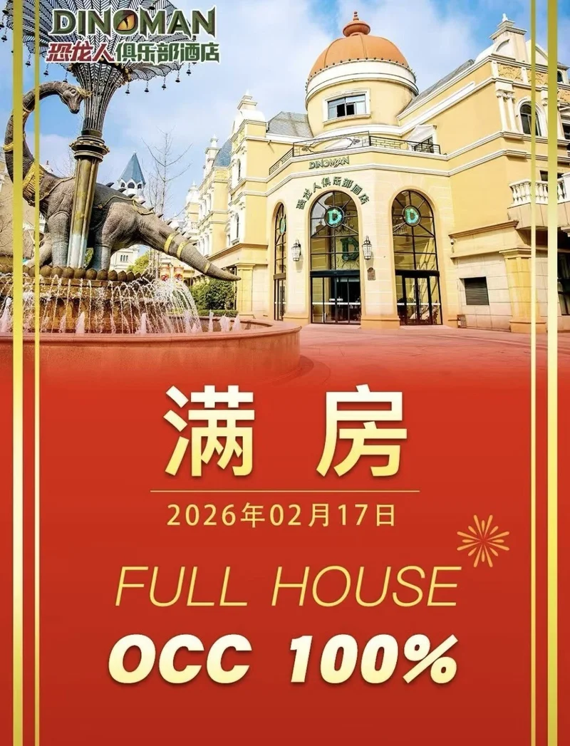 位于江苏常州市中华恐龙园度假区的恐龙人俱乐部酒店2月17日满房。