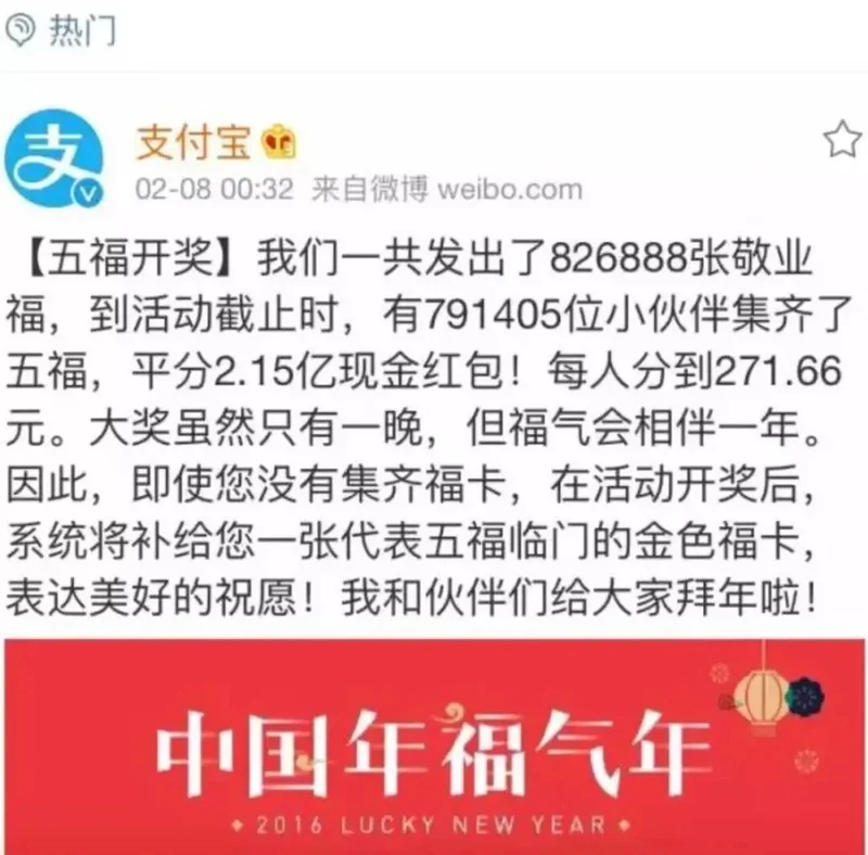 被“偷袭珍珠港”的支付宝,来年就以“集五福”活动反击。