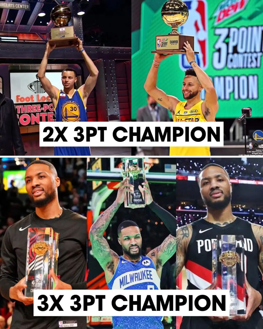 利拉德由此成为历史上第三位拥有三座三分冠军的球员,此前两位分别是拉里伯德(1986-1988)、霍奇斯(1990-1992)。