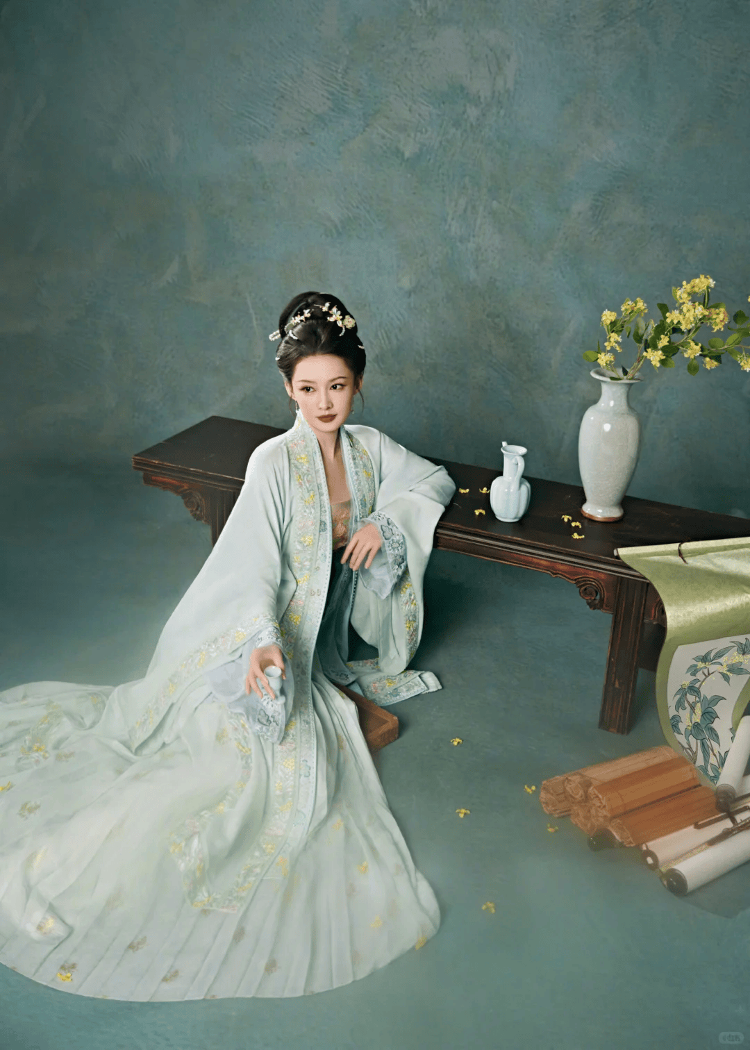 李云霄饰演的水仙花花神,将曹植笔下洛神的风姿化入每一缕袖风,翩然独舞时,宛若凌波微步、罗袜生尘,就如一枝冬末的水仙,月光照水、寒香自远。