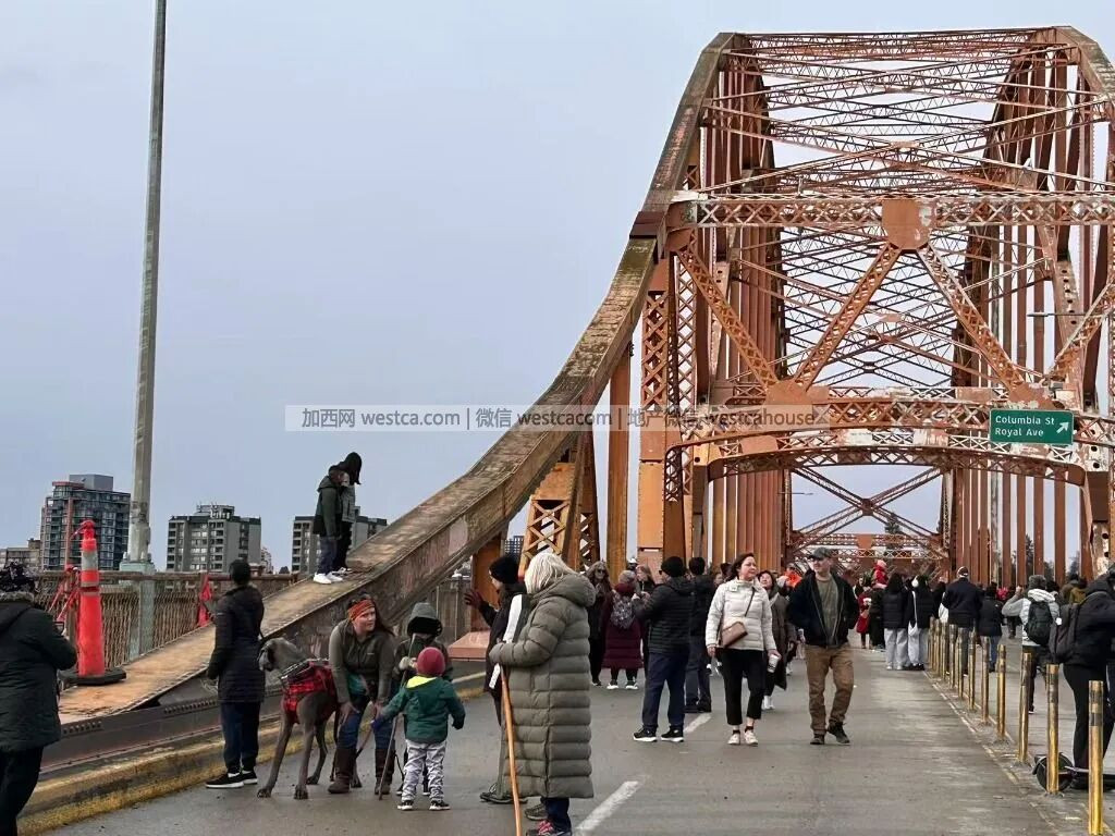 这个为大温人熟悉、连接素里市和新西敏市的橙色桥梁在服役89年后,已于周六随着新建四车道河景大桥(Stal̕əw̓asəm)的正式通车而永久关闭机动车车通行。