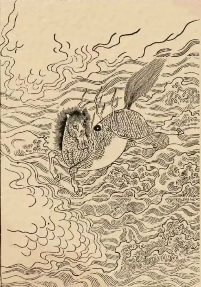 【清】周兴嗣撰,孙枝秀辑,《千字文注》龙马负图,神龟献书。图片转引自《西游妖物志》。