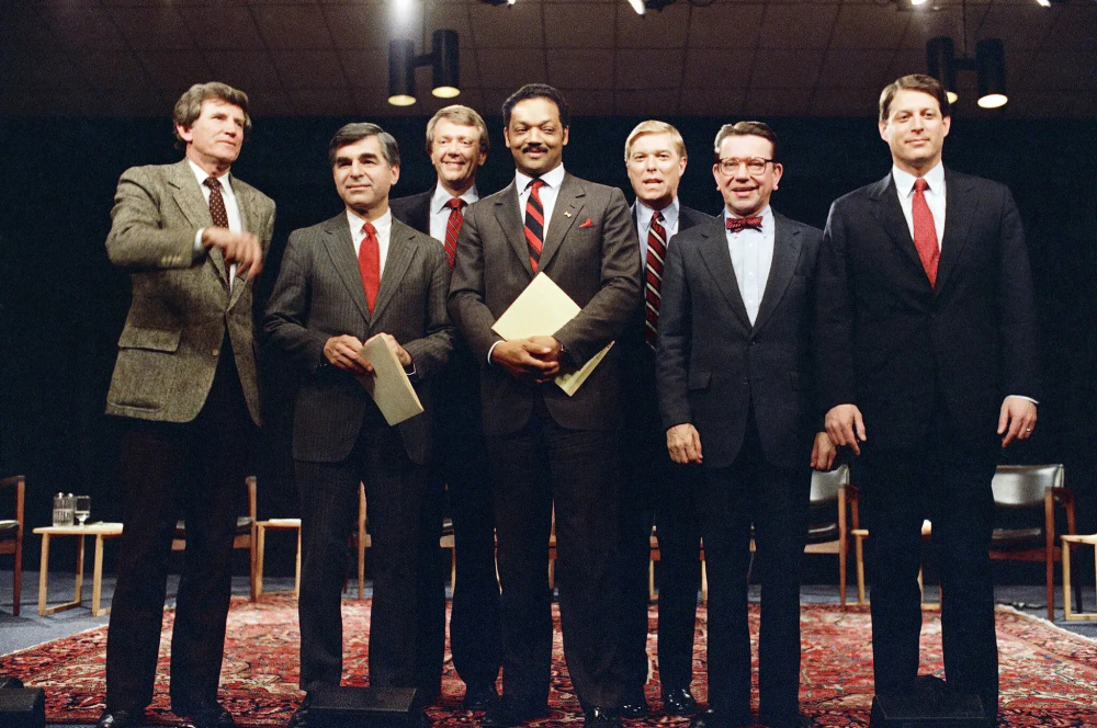 1988年,他再度参选,这一次以“党内重量级人物”的身份回到赛道。他在“超级星期二”中在21个州里有16个州位列第一或第二,最终在初选与党团会议中赢得近700万票,约占总票数29%,获得13场胜利,位列第二,最终提名由迈克尔·杜卡基斯(Michael Dukakis)获得。