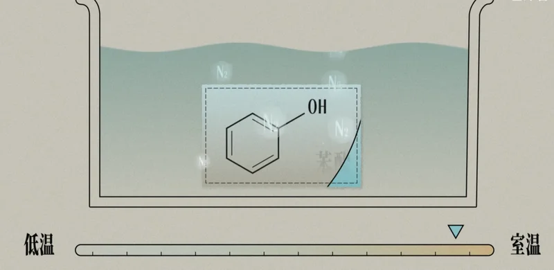 很遗憾,溶液状态的重氮盐,也一样难伺候。除了易燃易爆之外,重氮盐还有另一个让人头疼的性质:在室温下会自行分解。因此,为了保证重氮盐在反应中不变质,反应的温度必须保持足够低。