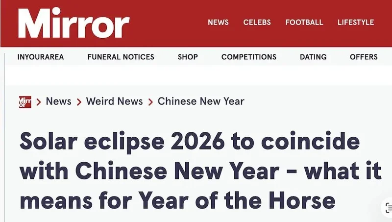 《镜报》:2026年日食和中国新年重合,它对马年意味着什么?