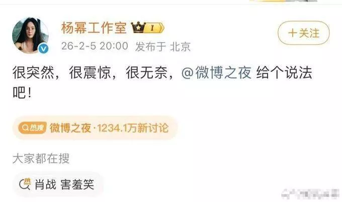 当天晚上七点半的时候,现场才刚刚被处理妥当,到了八点整,杨幂工作室一篇讨要说法的檄文准时发了出来,字里行间到处都是指责主办方不公平、自家艺人遭受委屈的内容。这样一手一边复位一边维权的组合拳,直接将一场调度失误包装成了姐姐被欺负的粉丝保卫战。根据现场观众爆料,那位撕掉肖战名牌的工作人员,在整场活动中一直守在杨幂身旁。在内娱从来都不相信巧合,成年人所处的名利场,每一次越界都有人给台阶下。