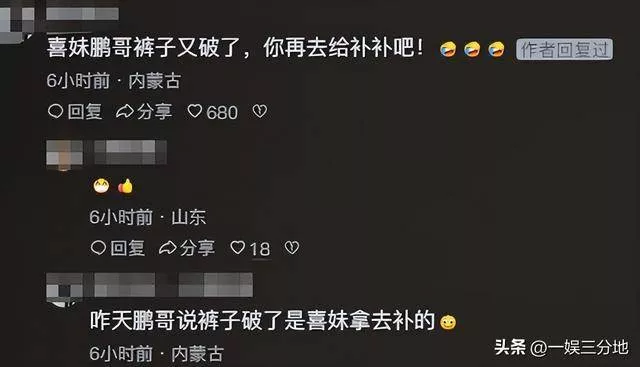 有一天,李亚鹏直播说自己的裤子破了,还说之前自己的裤子破了都是海哈金喜给补的,网友都跑到金喜的评论区留言了。