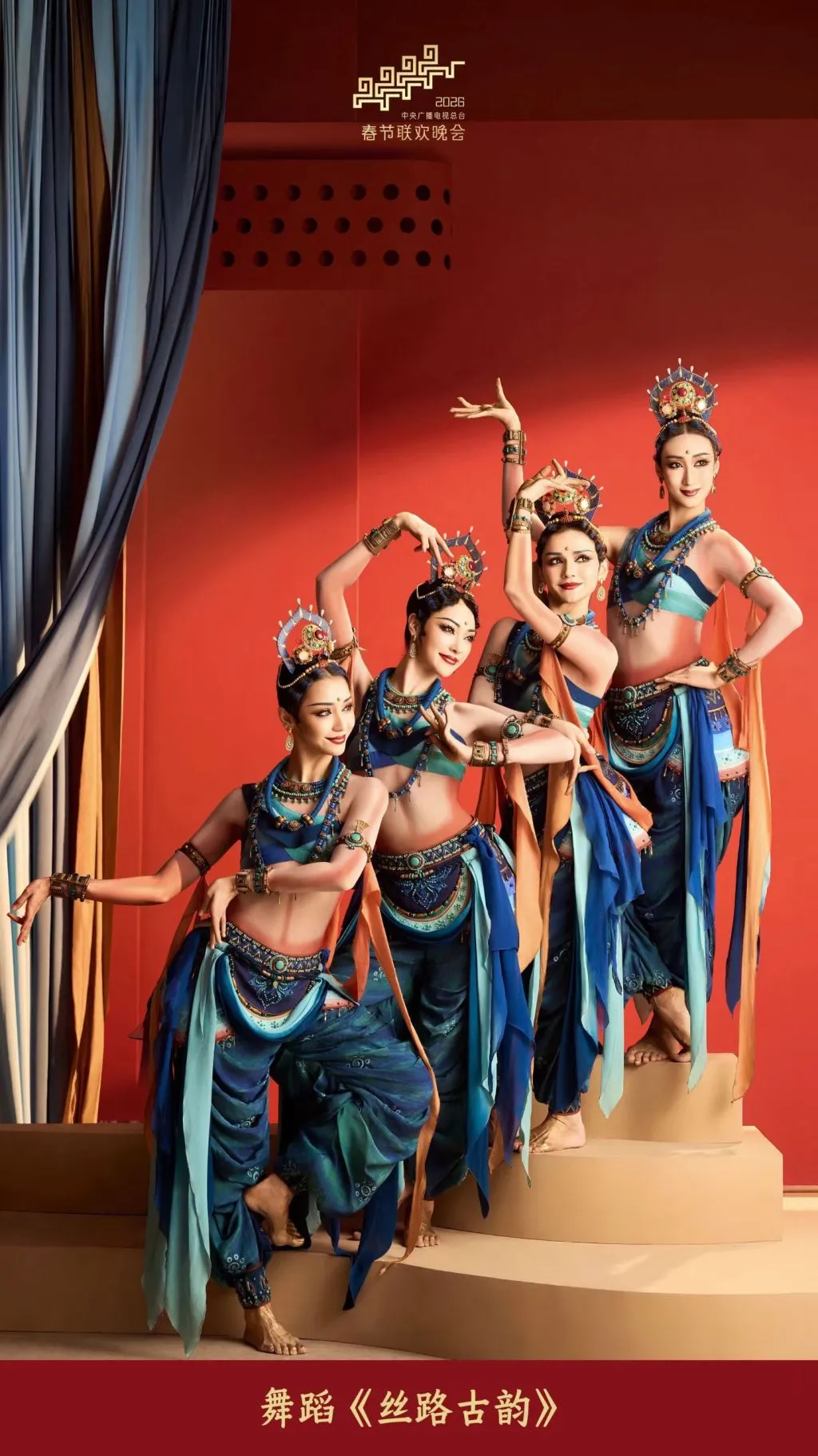 澎湃新闻记者获悉,就在春晚播出前不久,舞剧《龟兹》刚刚结束了覆盖上海、宁波、苏州、杭州、北京、天津、哈尔滨七座城市的十六场全国巡演,于2025年12月13日在哈尔滨大剧院落下帷幕。巡演的成功,为《丝路古韵》在春晚舞台上的绽放积累了深厚的观众基础与文化势能。而春晚舞台选取的片段,集中展现了龟兹乐舞最本真、最热烈的面貌,无疑当可视为对舞剧核心美学一次高度浓缩的电视化表达。
