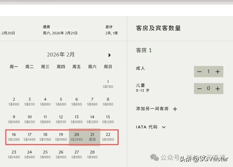 这个确实没办法,新加坡寸土寸金,滨海湾金沙春节期间住一晚的价格都是1280新币(约7000人民币)起步的,初四甚至高达2980新币(约16000人民币)!
