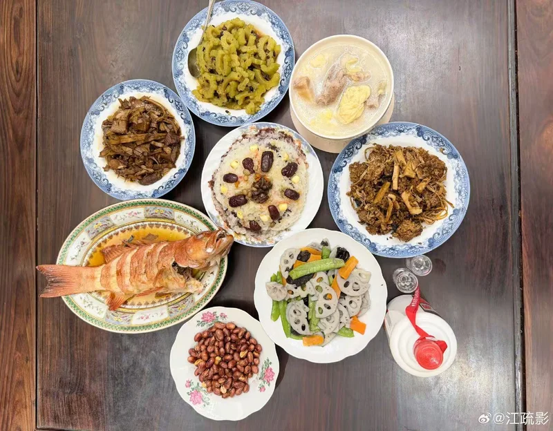 终于理解为什么说别人家的饭菜香了,江疏影晒的年夜饭主动一个真实,菜也都是硬菜,看了让人直流口水。