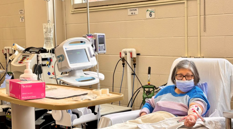 居住在大多伦多地区Oshawa市的69岁退休人士Wenida Dimaculangan,每周要三次花将近一个小时,前往Scarborough接受血液透析治疗。这项治疗需要通过导管将她的血液引出体外,清除其中的毒素。每次透析大约持续三个小时。
