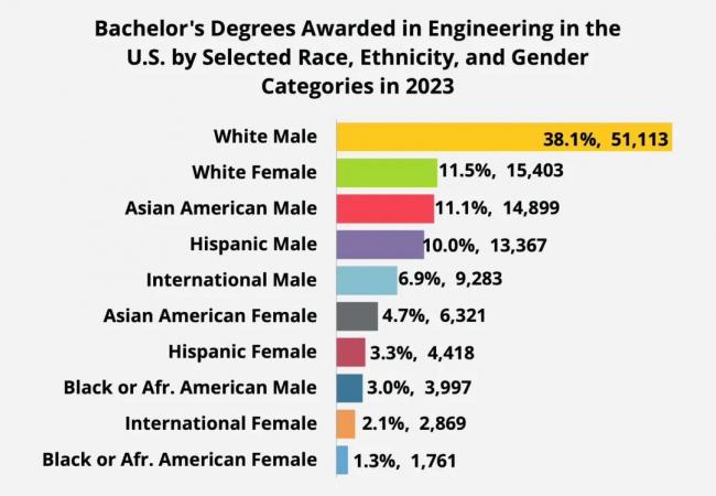 我们doubel check了一下:根据美国国家教育统计中心(NCES)及美国工程教育学会(ASEE)的近年数据,美国每年颁发的工科本科学位(Bachelor's degrees in Engineering)数量确实稳定在13万至14.5万之间。当然,如果算上计算机科学(CS),美国的数据会增加到20万以上,但严格意义上的“工程师”统计通常不包含纯CS。