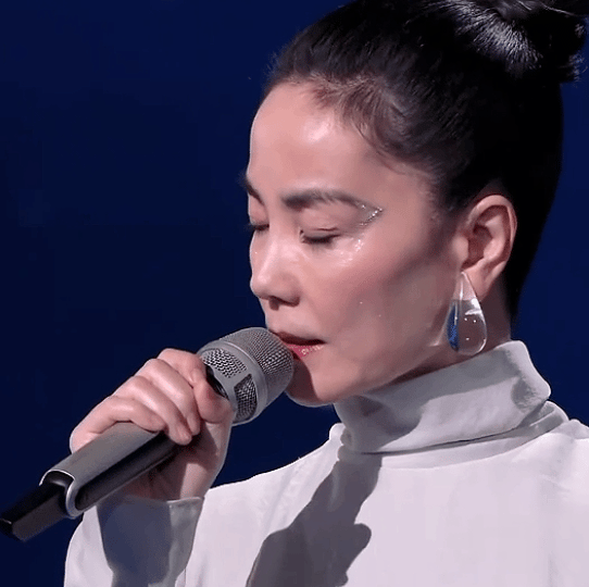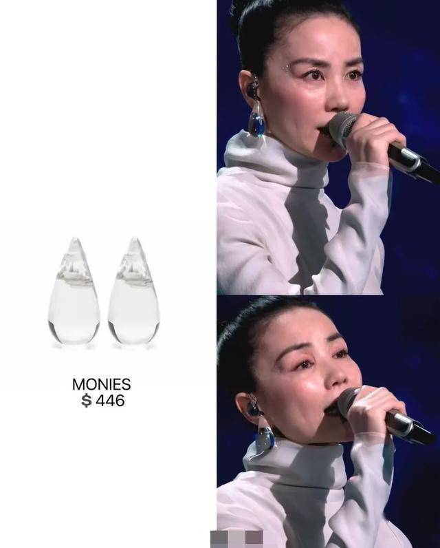 王菲也不愧是引领时尚潮流的天后,钻石妆面搭配弯下来粗眉,依旧是“很王菲”的妆容。