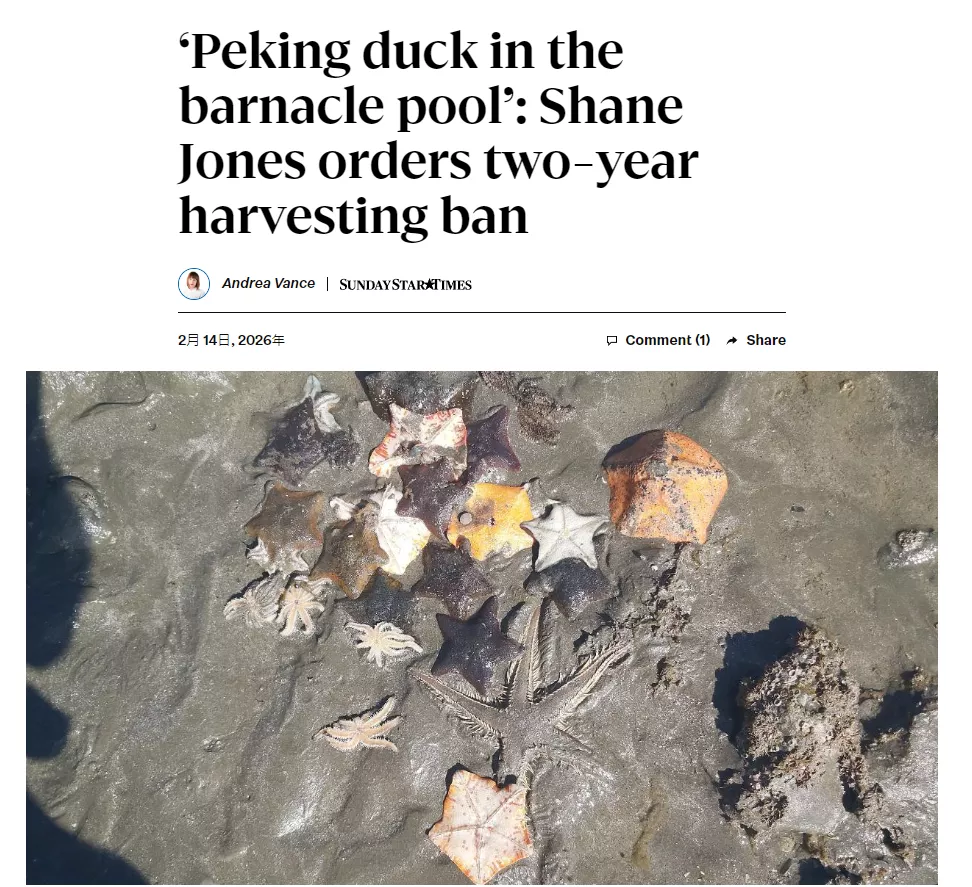 奥克兰北部将实施为期两年的“赶海禁令”。而真正让舆论爆炸的,是一位部长在解释政策时的一句话:“北京烤鸭正在入侵。”