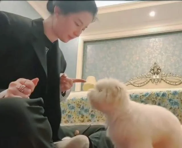 从此,“哈哈”就成了刘亦菲生活中不可或缺的一部分。 2025年国庆假期,网友偶遇刘亦菲自驾出游,“哈哈”就坐在副驾驶的专属软垫上。 同年12月北京初雪,刘亦菲特意抱着穿了一件小礼服的“哈哈”在雪地里合影,画面温馨得像童话。 这次拜年,它更是稳居C位。 网友的调侃铺天盖地:“这辈子做不了刘亦菲,做她的狗好像也不错? ”“请问‘哈哈’还缺玩伴吗? 上过大学的那种。 ”