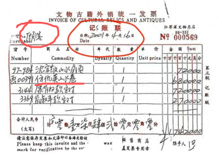 而此事中最值得关注的问题是:在当年12月接受外界调查时,涉事单位南京博物院曾向新华社记者出示过一份关键证据 —— 一张开具日期为2001年4月16日的发票。