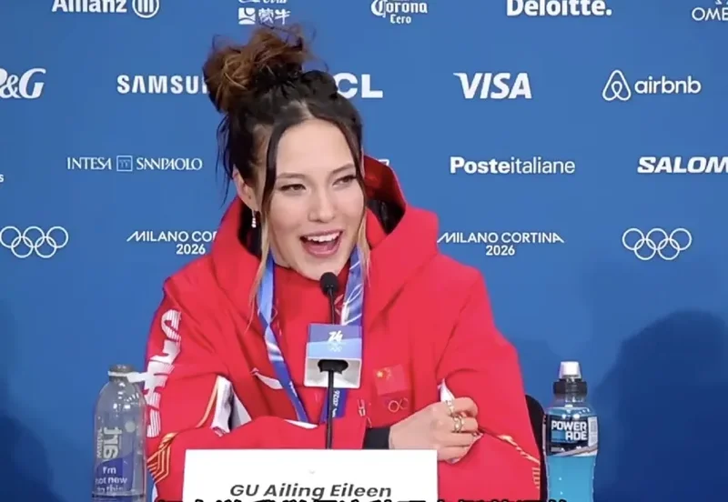 谷爱凌在发布会上自信地回答那位记者的提问