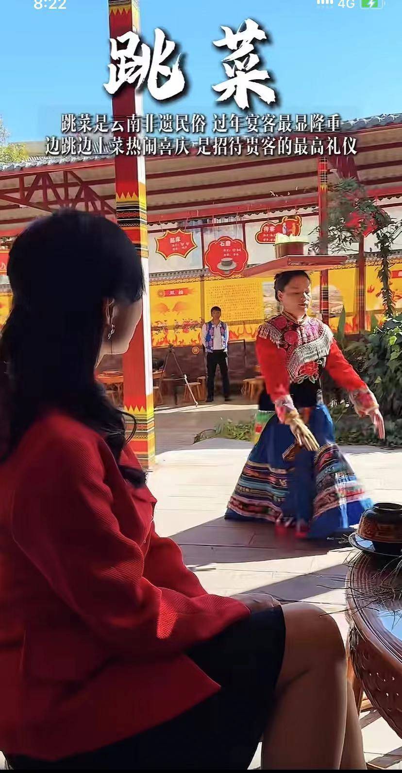 她不是文化掮客,是那个把乡音藏在骨子里、把非遗穿在身上的云南姑娘。她带老公喝“高山流水”敬酒时,唱的是那首被牛汉称为“中国最牛民歌”的彝族酒令:“阿老表,端酒喝;阿表妹,端酒喝。喜欢,也要喝;不喜欢,也要喝。”——这歌,就是跳菜的魂。