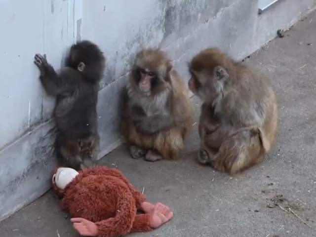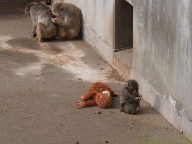 然而,当照护人员将六个月大的拳君转移到有其他猴子的围栏后,发现它很难融入群体。对猴子而言,从出生起就会紧紧依偎在妈妈身边,以此获得安全感,而被遗弃的拳君,却从未有过这样的温暖。为了缓解它的焦虑和孤独,照护人员送给它一只超大号的红毛猩猩毛绒玩具,之所以选择这款玩具,是因为红毛猩猩的毛够长,方便小拳君抓握,外型也和猴子有几分相似,能给它更多慰藉。