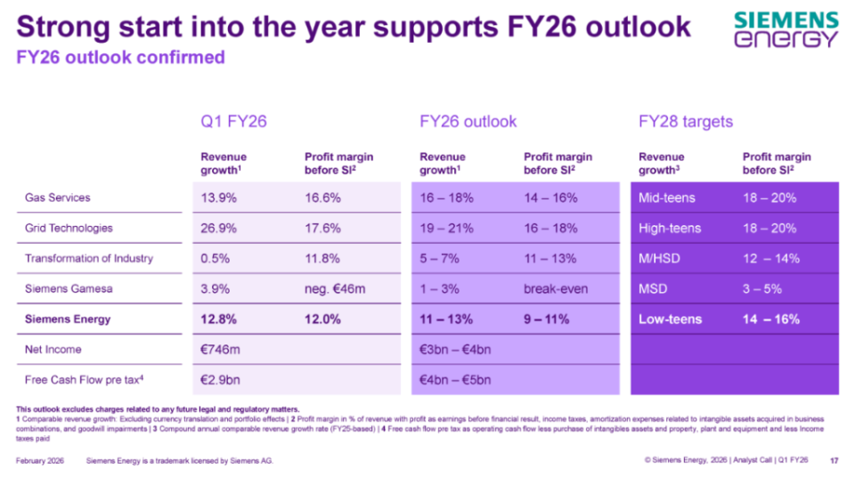 西门子能源给出的2026财年、2028财年业绩指引