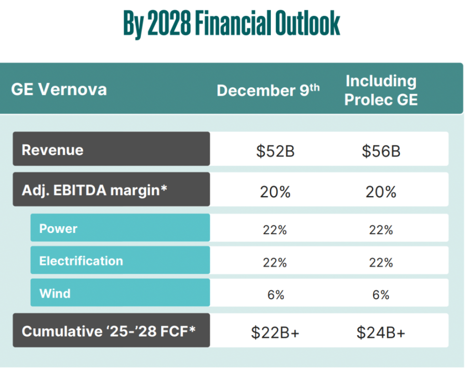 GE Vernova提出的2028财年业绩指引