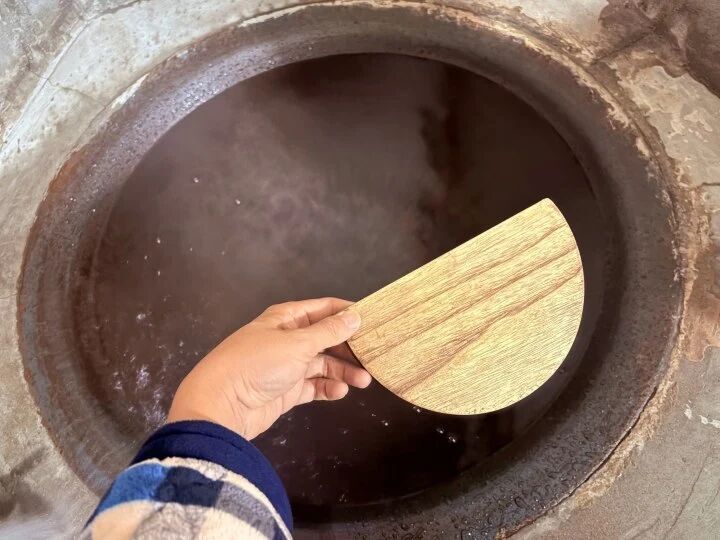 “毕竟是大铁锅,柴火加热的锅底比较烫,坐不上去,而人坐在这块木头上泡澡就能隔热,舒服得嘞!”老袁说这是老一辈的智慧。