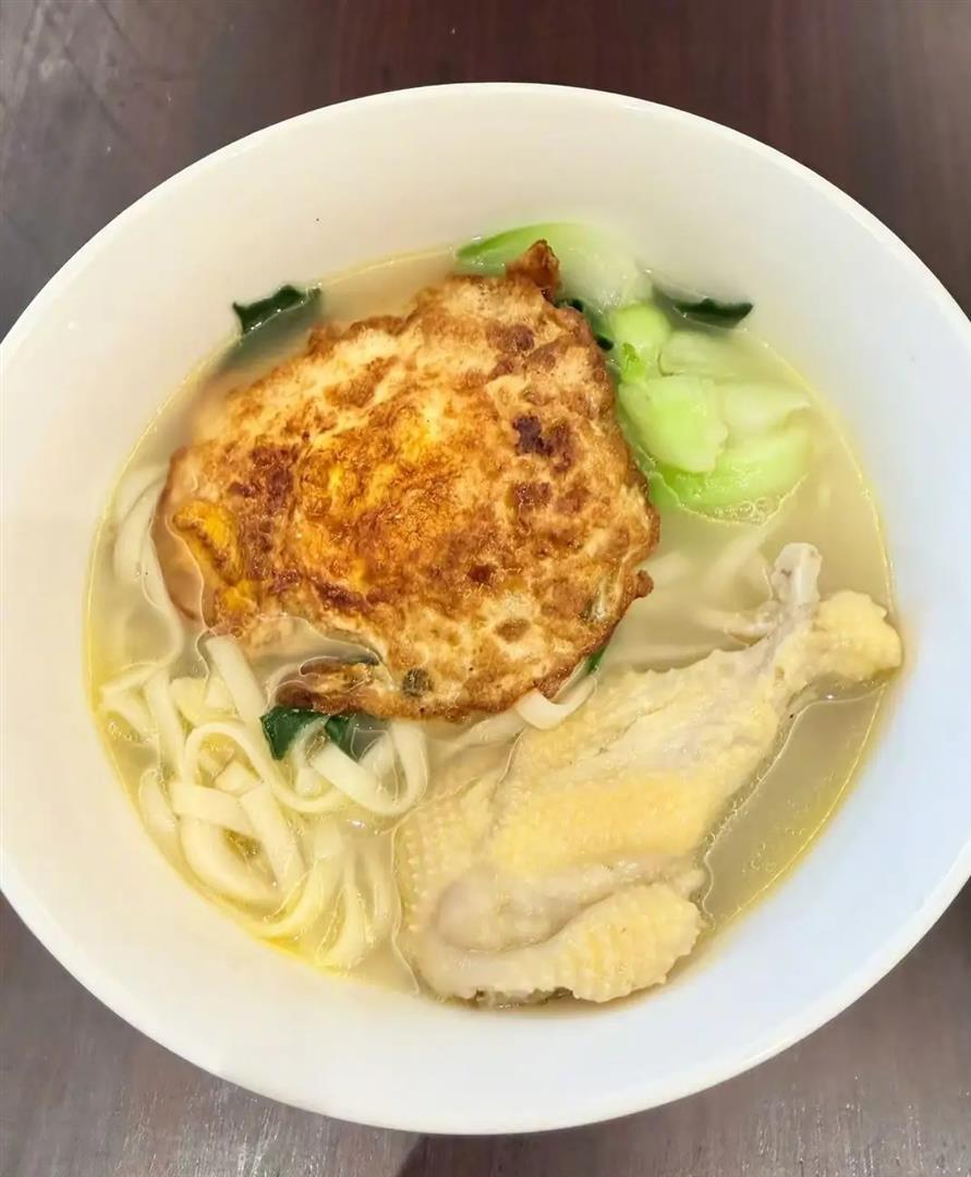 早上九点多,第一张照片是一碗摆在桌上的早餐。清亮的鸡汤里卧着一个圆润的荷包蛋,旁边是细细的面条,汤面上飘着几点油星和葱花。这可不是什么精致的摆拍,就是家里日常吃的那种碗,普普通通,却透着股“妈妈的味道”。