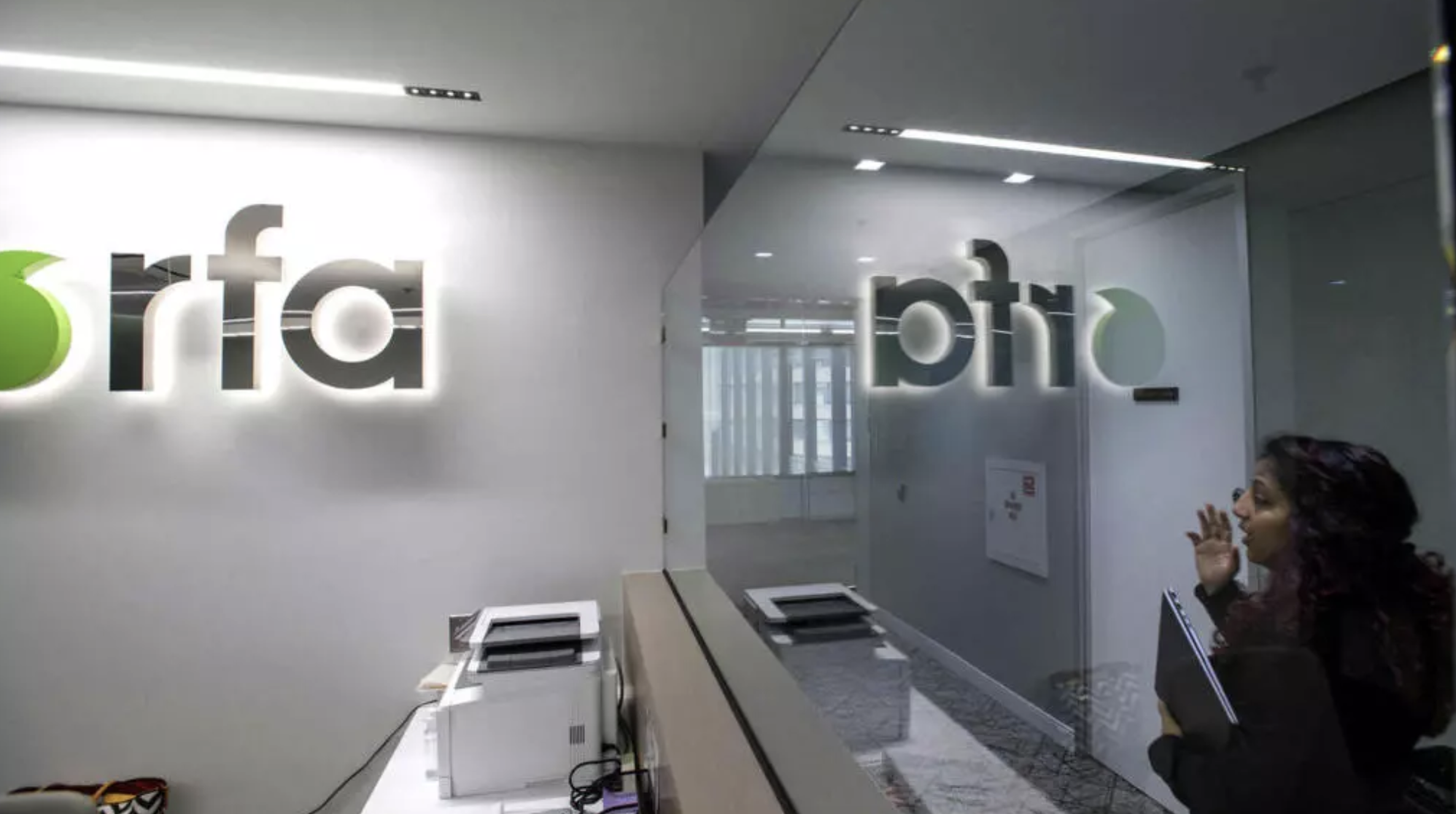 A woman walks past the empty receptionist desk at Radio Free Asia, Tuesday, April 1, 2025, in Washington. AP - Rod Lamkey