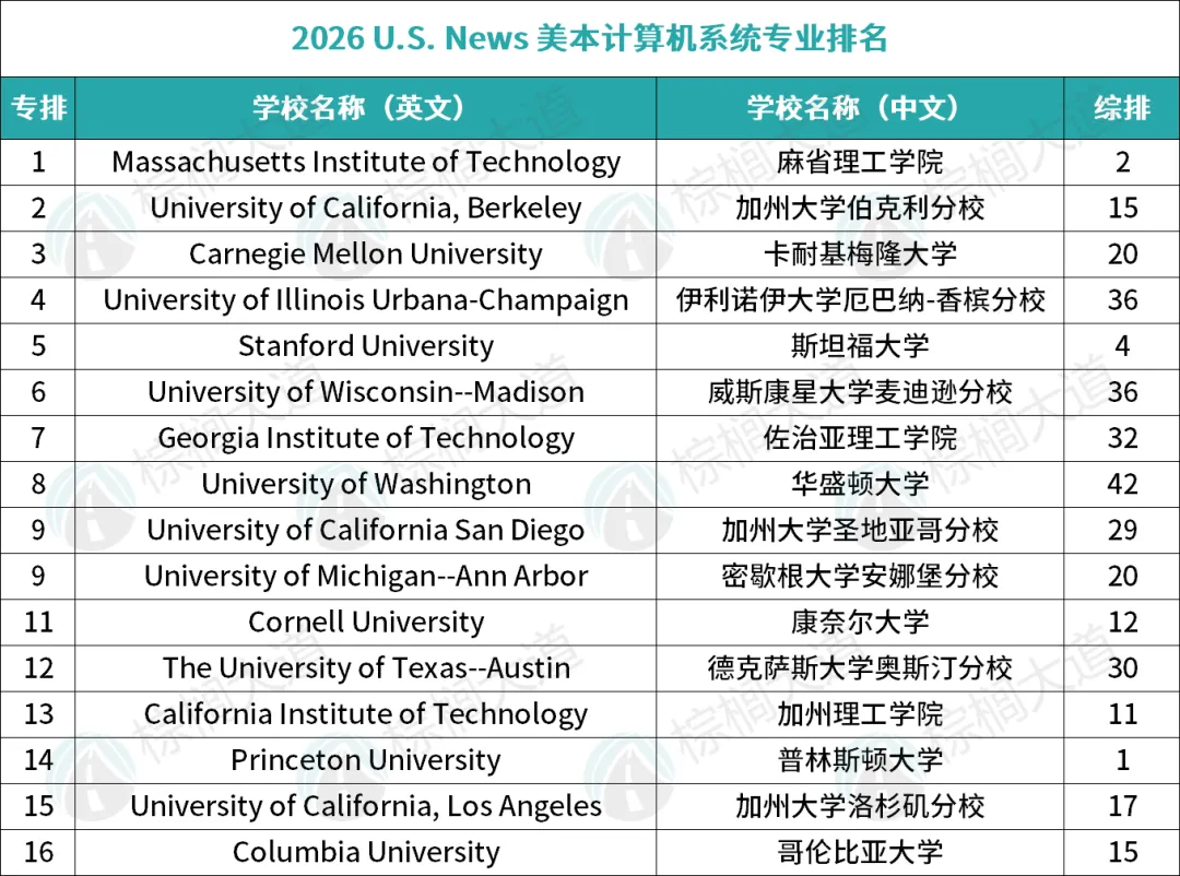 U.S.News、Niche发布2026美国大学排名后,备受准留学家庭关注的商科、工科、CS等学科排名也“焕然一新”!