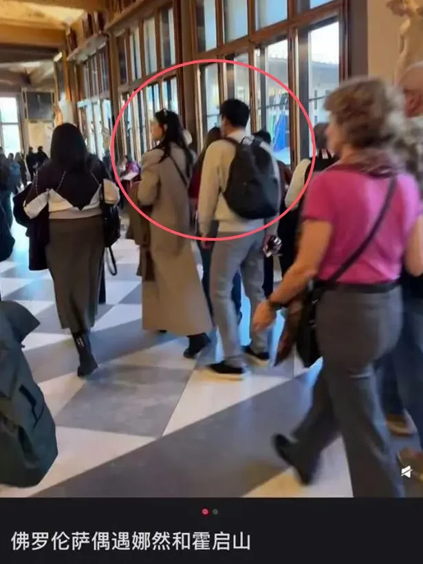 视频中,娜然回头和身后的女子说话,她把墨镜放在头发上,估计是没想到会被人认出,另外也有网友在意大利偶遇娜然和霍启山,她穿着灰色大衣,霍启山则背着背包,一身工作装打扮。