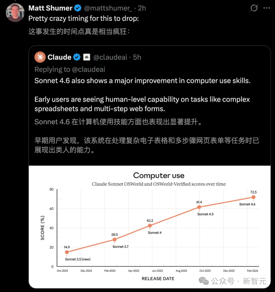 计算机使用方面,它拿下72.5%亮眼成绩,在处理复杂电子表格、网页表单等任务展现出「类人」的能力。