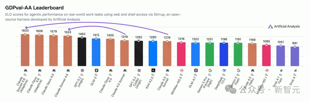 在GDPval-AA知识型智能体任务测试中,Sonnet 4.6以Elo 1633惊人高分,击败了自家的Opus 4.6。