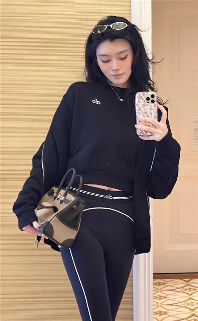 她手里那只新入手的浅咖色爱马仕,成了整套造型的点睛之笔。