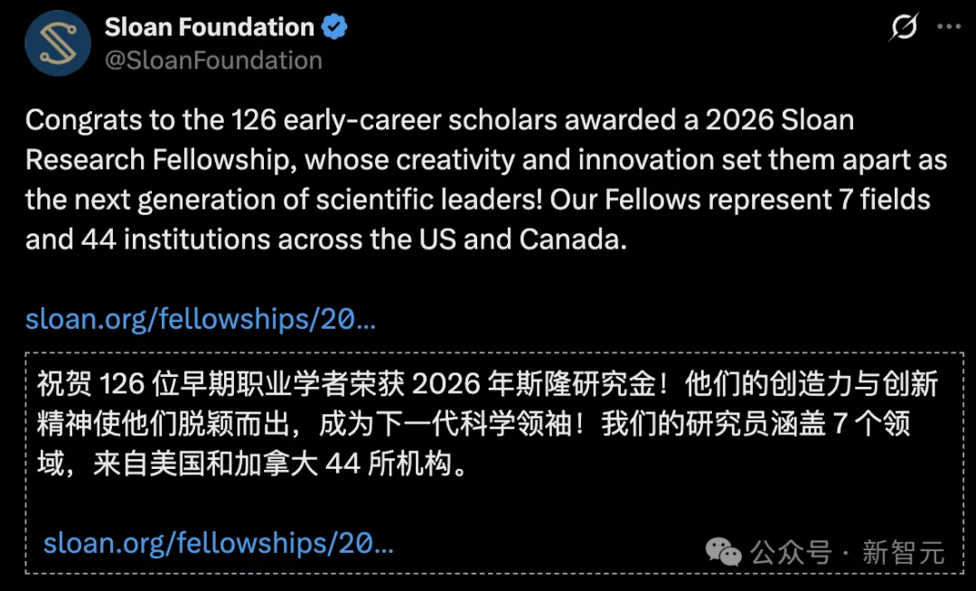 「诺奖风向标」2026斯隆奖揭晓:华人霸榜新智元
