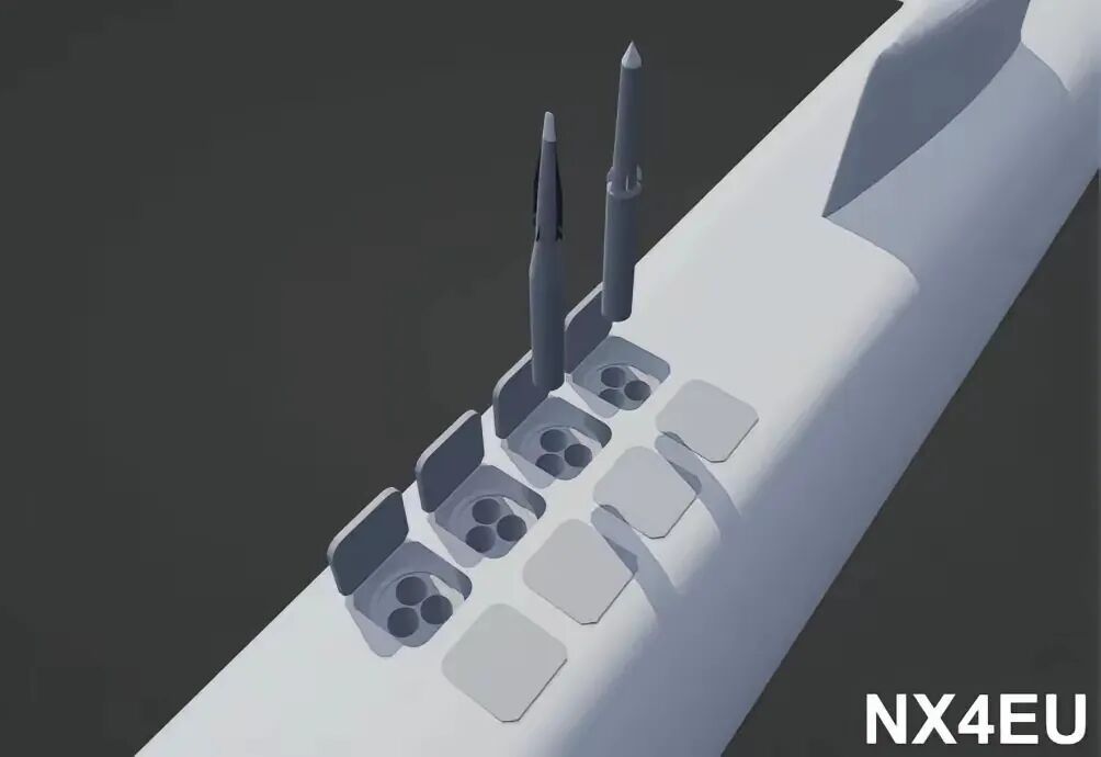 另外,美国弗吉尼亚级Block V是有小龟背的,因为增加了VPM模块,用于发射战斧巡航导弹。水下排水量是10200吨,理论上拥有全寿命期内不需要更换核能料。然而,尾舵技术还是十字舵,噪音90分贝,接近大海背景声音。