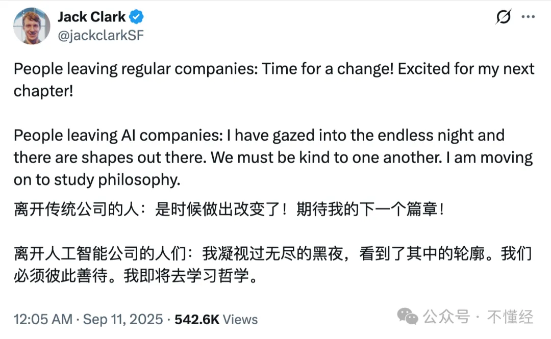 当前最火大模型cluade母公司Anthropic的联合创始人Jack Clark,最近发了一条相关的推文,精准概括了这种现象: