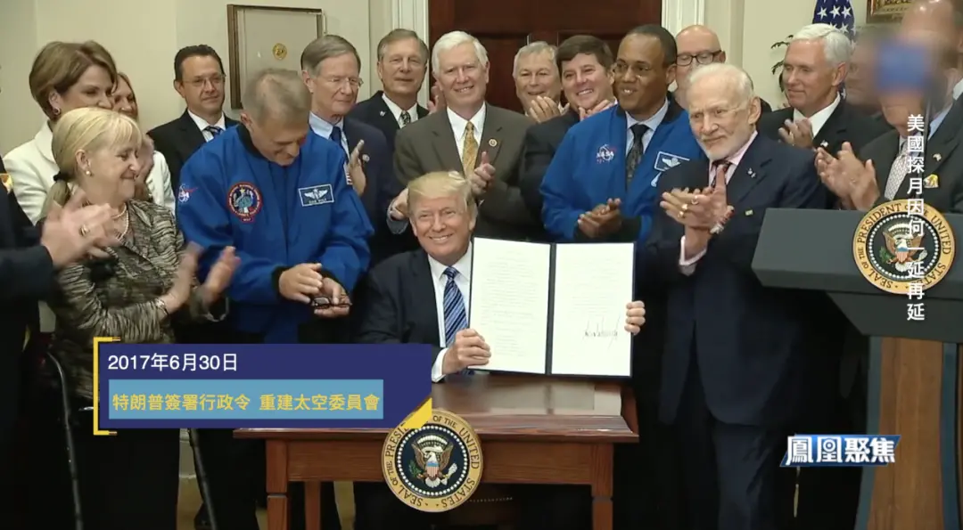 2017年6月30日,特朗普签署行政命令重建美国国家太空委员会,直言“美国要重新引领太空领域的未来”。