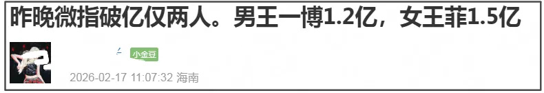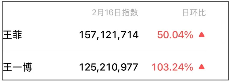先来看一组王菲春晚相关的数据,微指是当晚唯一破亿的女星,高达1.5亿,飙升50%,把一众流量小花甩在身后。