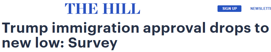 而在移民政策方面,根据一项最新调查,公众对川普政府在移民问题上的处理方式的支持率已降至他去年重返白宫以来的最低水平。