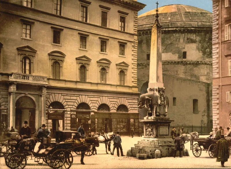 “驮着方尖碑的小象”由巴洛克艺术大师贝尼尼设计,其学生埃尔科莱·费拉塔(Ercole Ferrata)于1667年完成制作。