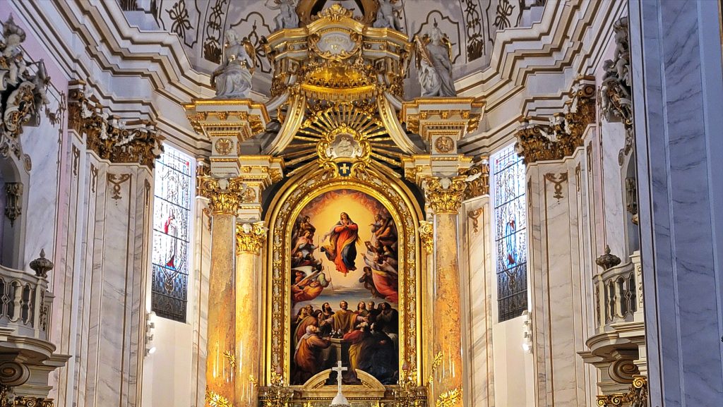 教堂内祭坛上圣母升天的巨幅油画