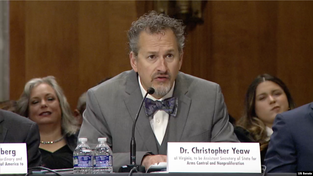 资料照片:2025年11月19日,被提名为负责军控、防扩散与稳定事务的助理国务卿克里斯托弗·耶奥在参议院外交关系委员会的提名确认听证会上发言。