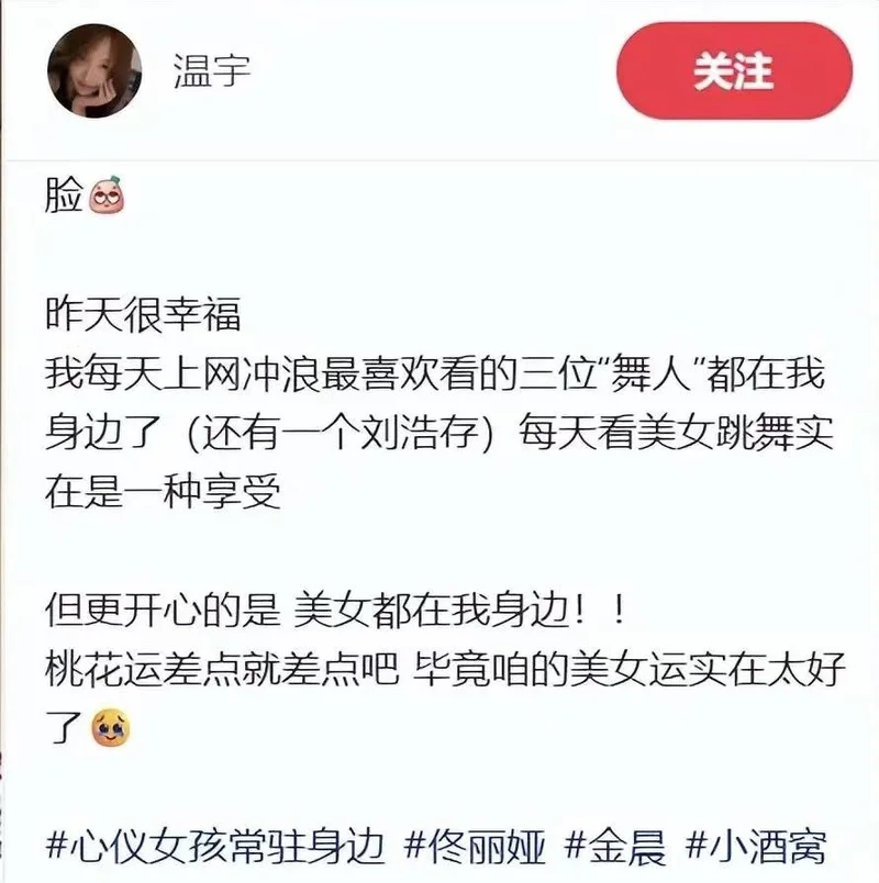 在三亚过年的还有董璇和佟丽娅,她们俩的闺蜜发文称年初一那天实在是太幸福了。身边一共有三位“舞人”,佟丽娅、金晨和小酒窝,大家一起集合过年。因为她们实在太漂亮了,闺蜜吐槽影响了自己的桃花运。