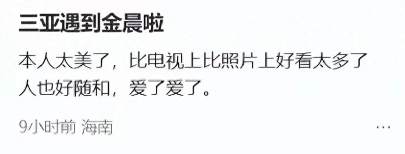 今年过年明星扎堆去三亚,金晨去了几天就被偶遇几天。有人在零食店偶遇金晨,夸她真人比电视上还好看。
