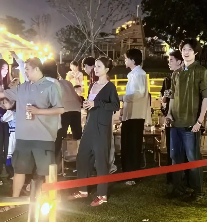 金晨一点都不忌讳被偷拍,还大大方方跟粉丝合影。她穿着小吊带背心,合影时用手捂住领口,很谨慎。