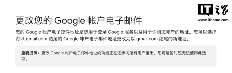 谷歌确认:用户未来可修改邮箱前缀IT之家