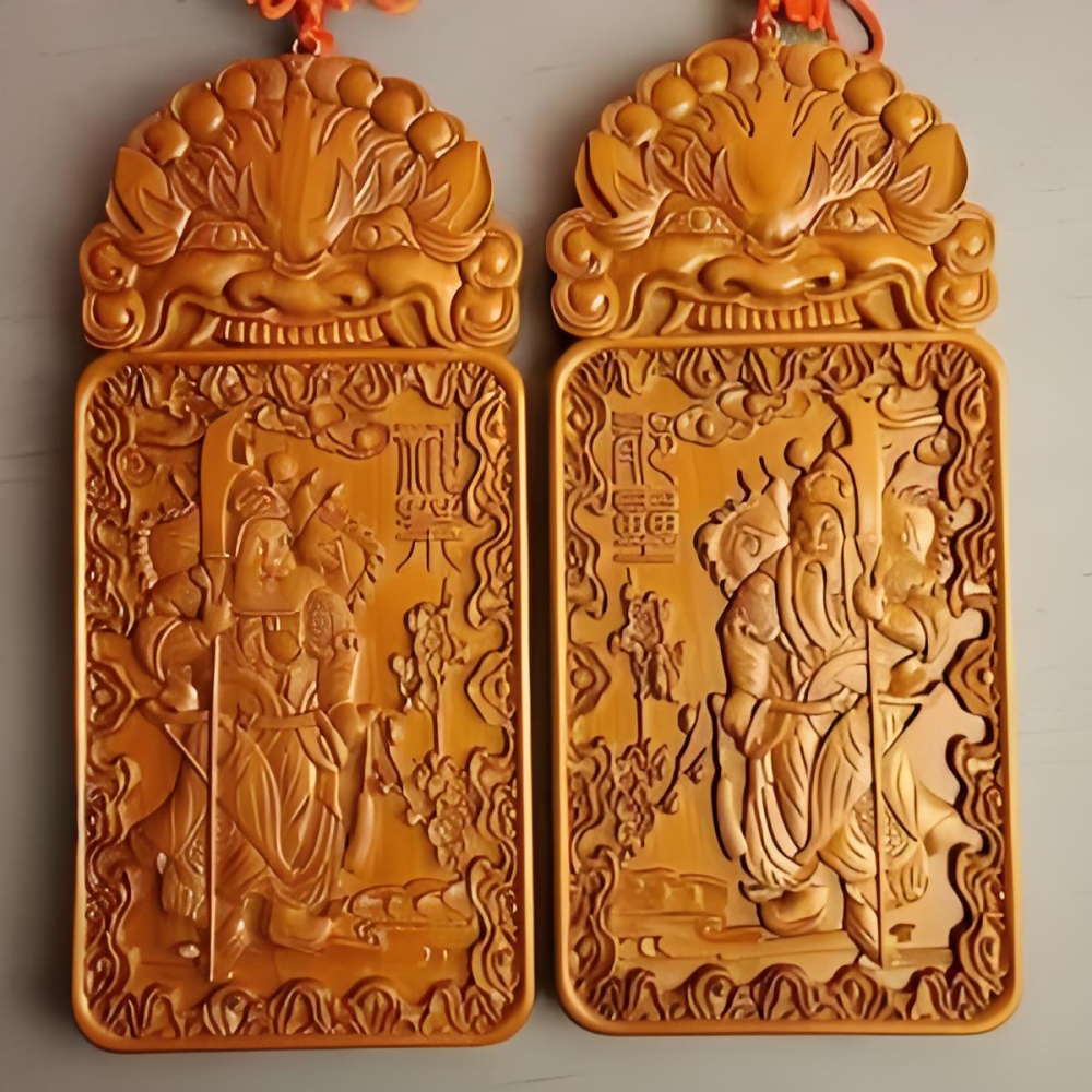 和今天单纯地张贴门神不同,和神荼、郁垒一同出现的还有桃木与老虎。古人认为桃木和老虎都能驱邪,“总把新桃换旧符”说的就是桃木。《续汉书・礼仪志》记载,季冬之月,在腊月一日进行大傩,称之为“逐疫”“百官官府各以木面兽能为傩人师讫,设桃梗、郁垒、苇茭毕,执事陛者罢。苇戟、桃杖以赐公卿、将军、特侯、诸侯云”。这里的桃梗就是桃树枝。朝廷会将这些附有驱邪意义的器物送给贵族,以示祝福。此外,五代时期后蜀的君主孟昶也在桃木片上写上祝福的话语,挂在宫门为人祈福。因此桃木在古代是有趋吉避凶作用的。