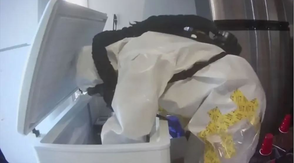 一位线人指出,他在车库里见到一件物品是在后疫情时代,特别令人寒惭,就是一个带有集成手套的生物安全柜,有些手套从柜中伸延在外,情景令人认出像是从照片见过的武汉病毒研究所那种。 执法人员表示,这位线人描述的设备,与BSL-4实验室相符,而BSL-4是生物安全最高级别实验室,专门用于埃博拉、马堡和天花病毒的相关工作。